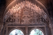 Le seuil de l'arche d'accès a le carrelage le plus gracieux de l'Alhambra pour sa petite taille et son exécution; au-dessus d'eux, les tacas traditionnels sont remplacés par des arceaux aveugles séparés.